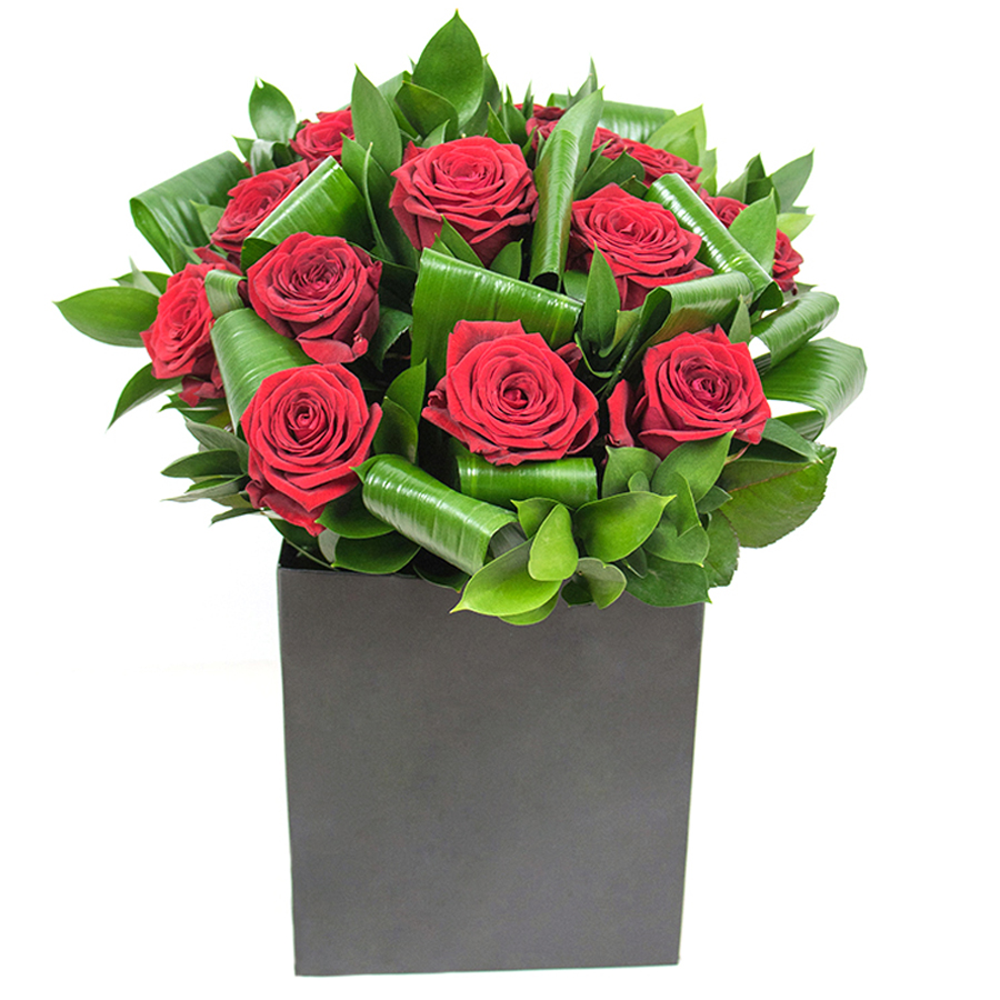 Experience the allure of our luxurious bouquet, a stunning blend of deep red roses, lush aspidistra leaves, and refined ruscus. This arrangement is designed for those who appreciate beauty, quality, and sophistication. Each flower is carefully hand-selected to deliver unmatched freshness and vibrancy.